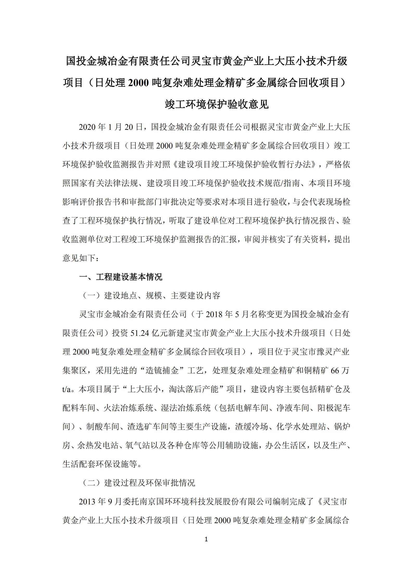 国投金城冶金有限责任公司全资子公司灵宝金城矿业有限公司信息