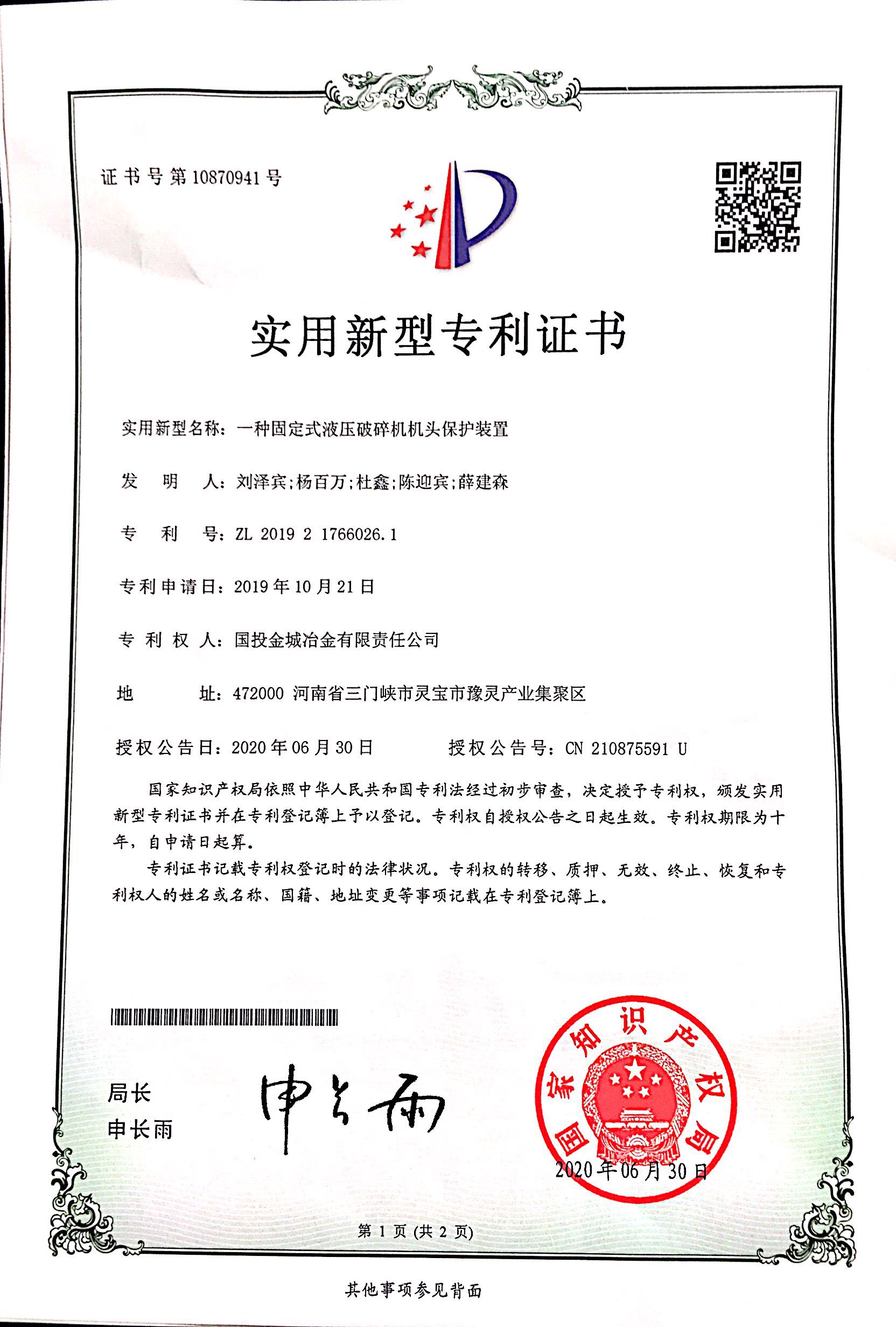 一种固定式液压破碎机机头保护装...