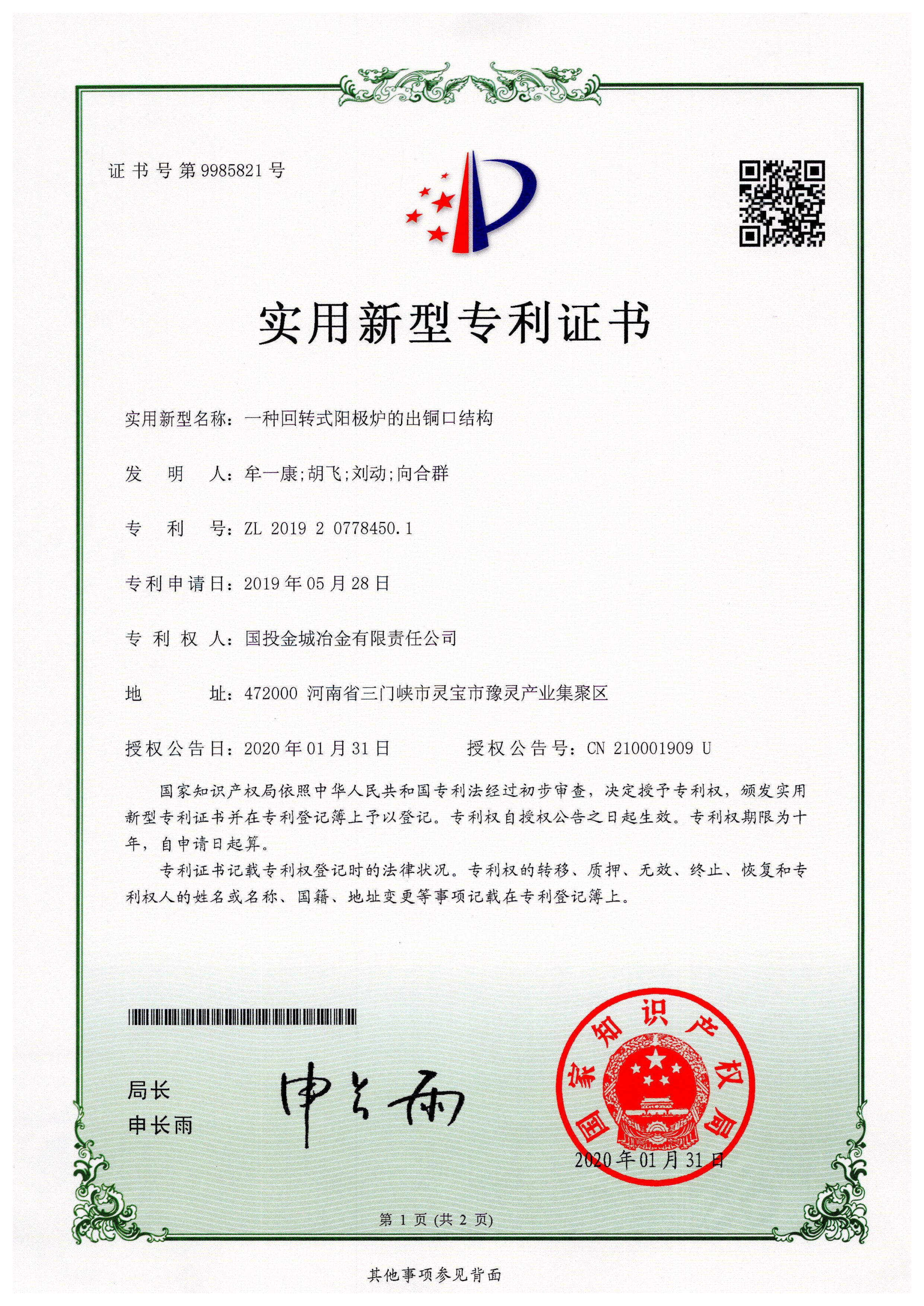 一种回转式阳极炉的出铜口结构
