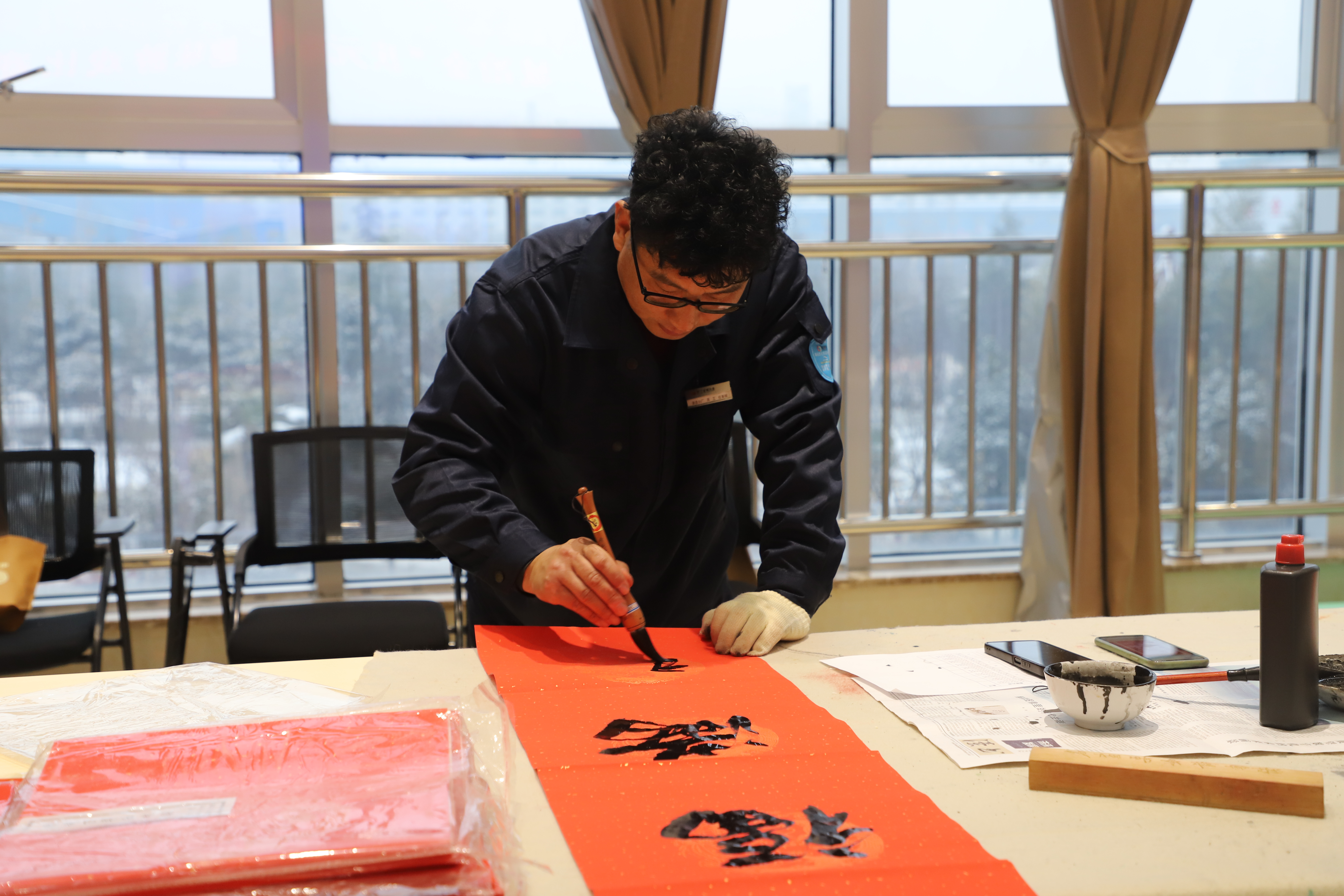 活动现场,公司书画协会会长王伟、书法爱好者任革辉挥毫泼墨、红纸翻飞,一笔一墨彰显书法魅力,一纸一砚书写美好愿景,一幅幅散发着清新墨香的精致春联跃然纸上。