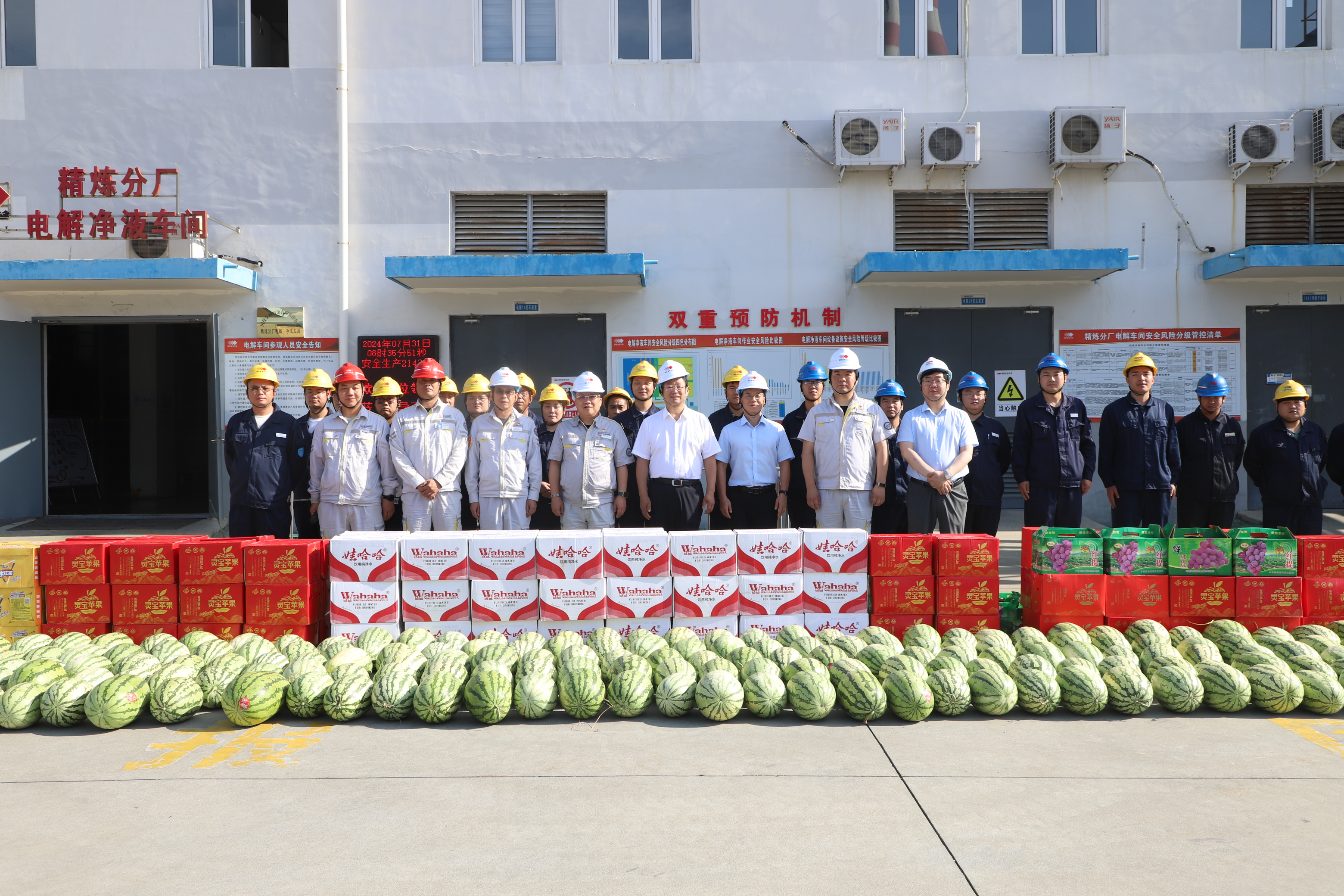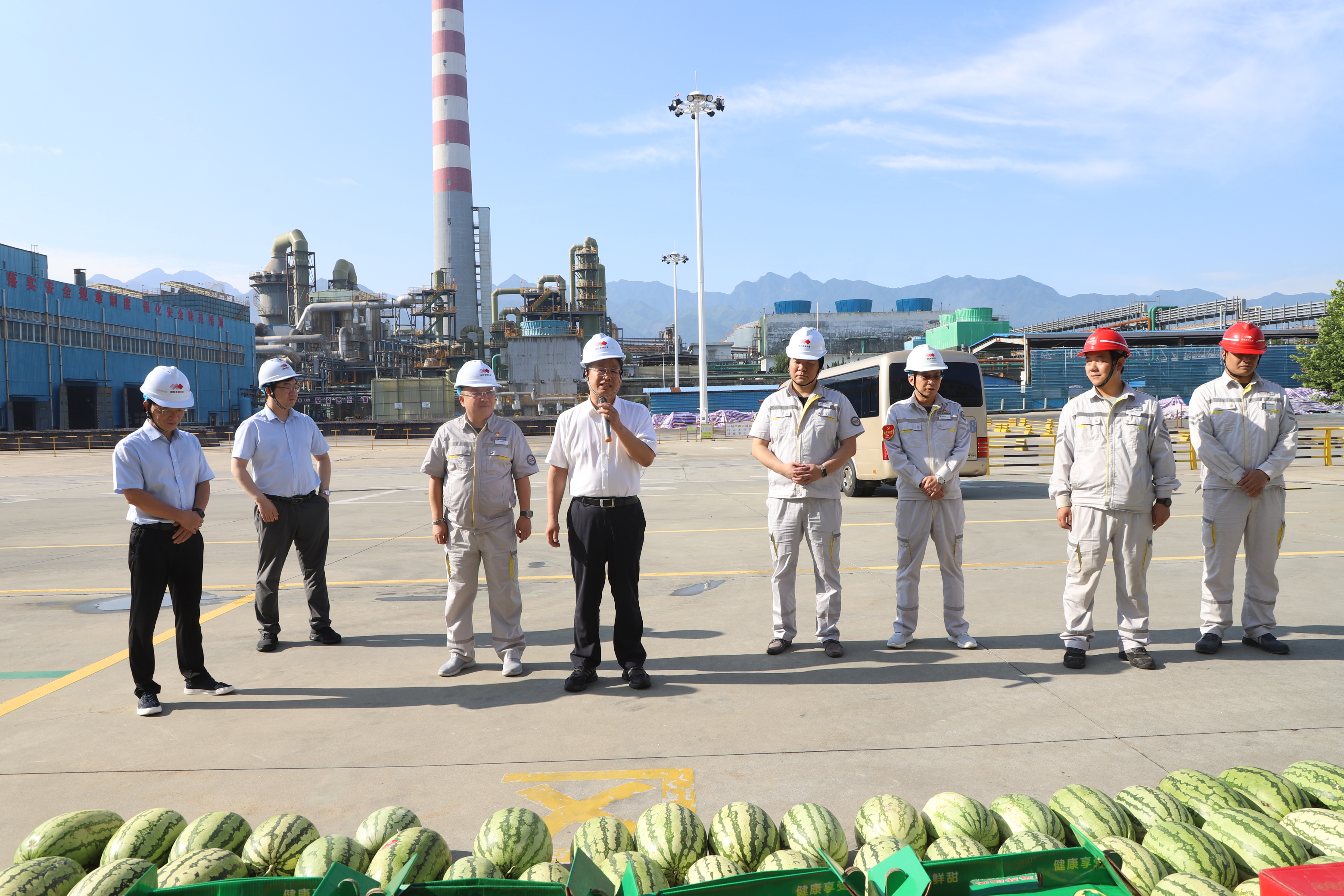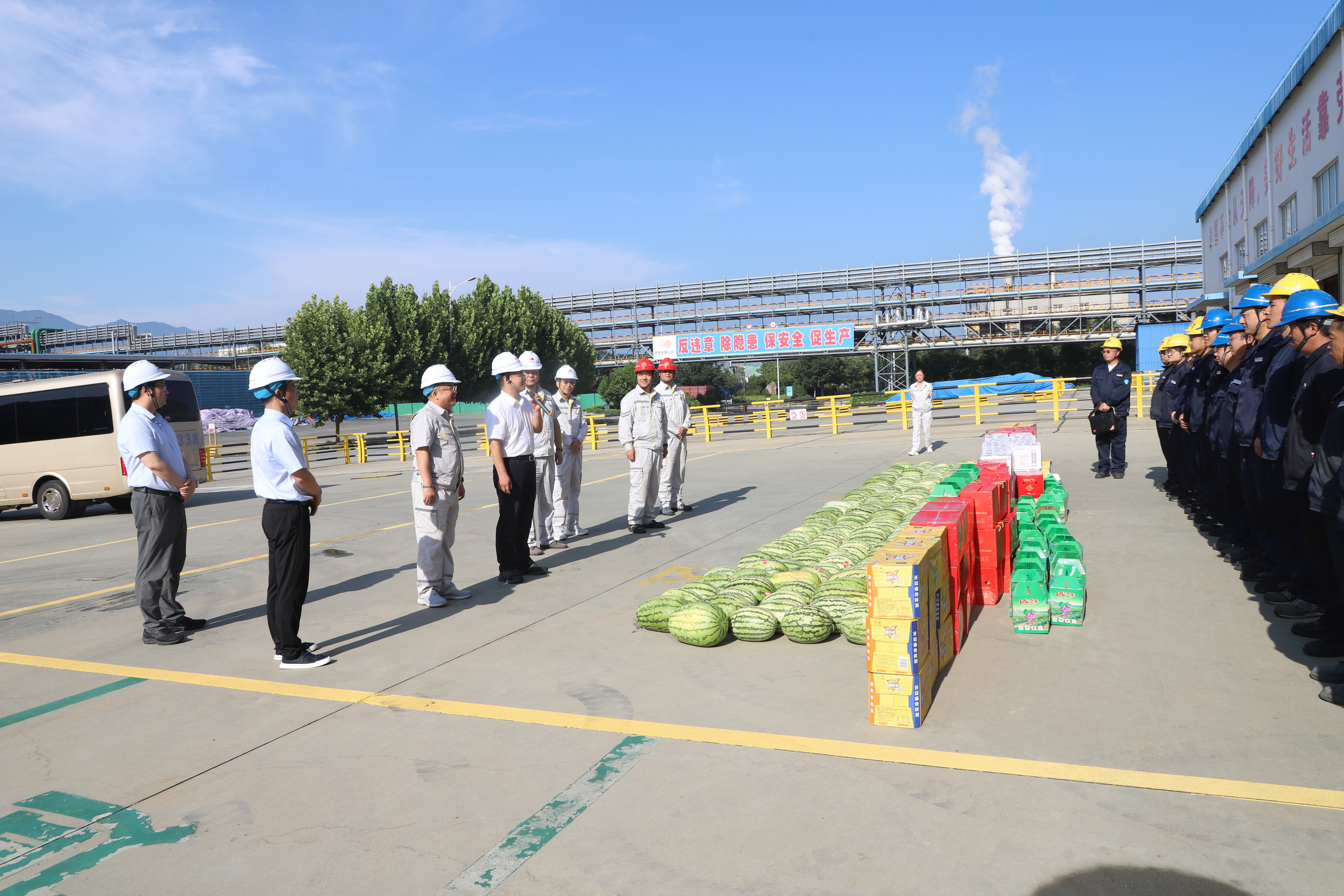 赵铁安一行到生产现场慰问奋战在一线工作岗位上的干部职工,并为大家发放了饮料、矿泉水、西瓜等防暑降温物品,给在高温酷暑天气辛勤工作的一线干部职工送来一份清凉。