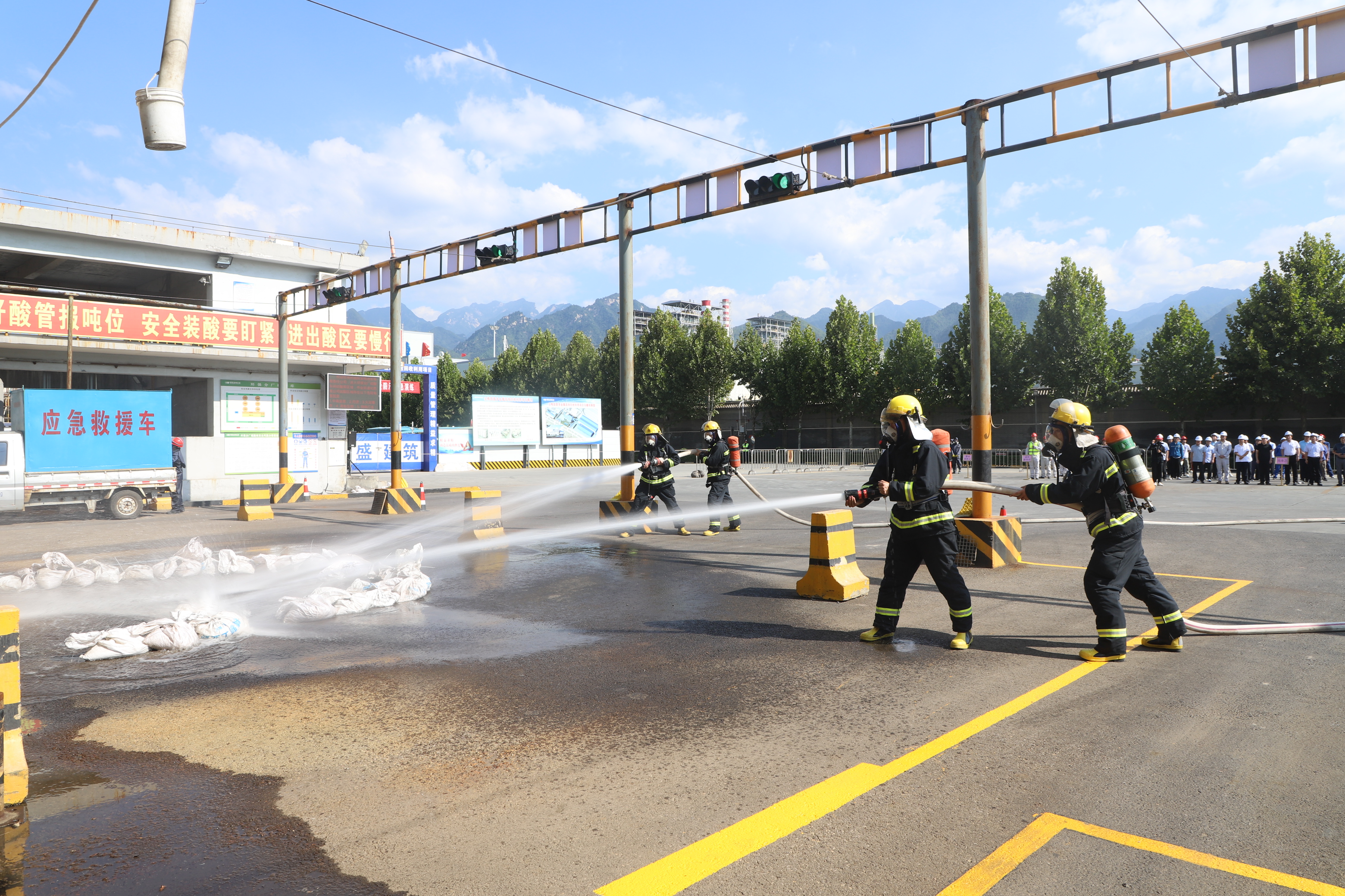 2024-08-29为认真贯彻落实习近平总书记关于安全生产重要论述和指示批示精神,进一步提升企业安全管理水平和应急处置能力,检验和锻炼应急救援队伍在事故状态下的应急救援能力,8月28日下午,灵宝市应急管理局在公司组织开展危险化学品领域“跟着标杆学安全”—综合应急演练观摩活动,三门峡市应急管理局党委委员、副局长郑志刚,灵宝市委常委、副市长贾学党,市应急管理局党委书记、局长田涛,三门峡市应急管理局危险化学品安全监督管理科科长张新华,豫灵镇党委书记刘冬,应急演练评估专家常建钦,公司党委书记、总经理刘辉出席,公司相关部门干部职工共计90余人参加。灵宝市11家危险化学品企业主要负责人和安全管理人员到现场观摩。公司副总经理张宏斌担任演练总指挥,田涛主持观摩活动。