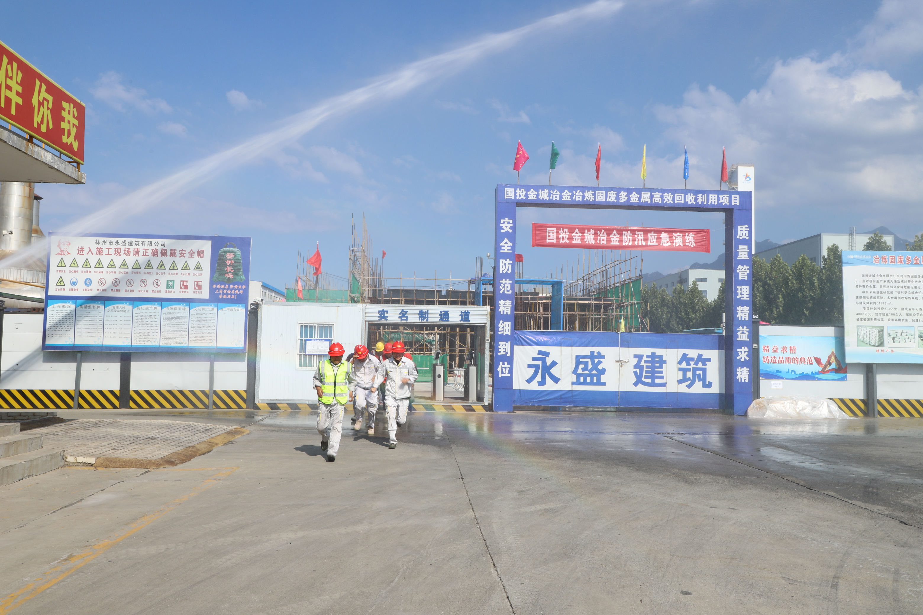 硫酸泄漏演练结束后,灵宝市应急管理局在公司冶炼固废多金属高效回收利用项目区域组织开展防汛演练现场观摩活动。