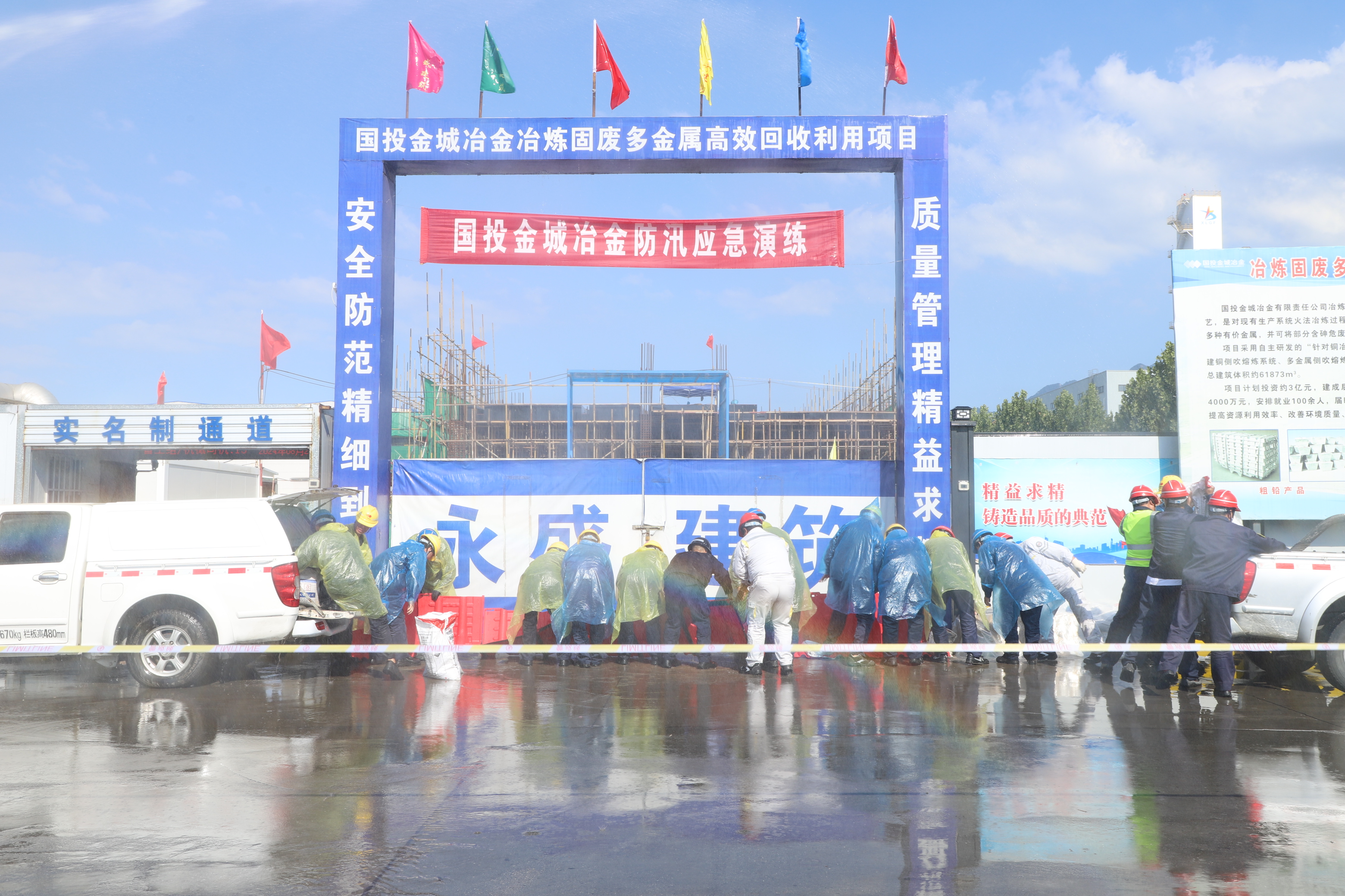 演练模拟灵宝市出现大暴雨,并伴有雷电、短时大风、强降水等强对流天气,灵宝市防汛抗旱指挥部启动防汛ii级应急响应,公司冶炼固废多金属高效回收利用项目施工现场出现汛情。公司立即下达“紧急停产、紧急撤离项目施工人员”指令,组织应急人员开展防汛应急抢险工作,对项目施工现场低洼处进行封堵,有效控制并消除事故隐患。
