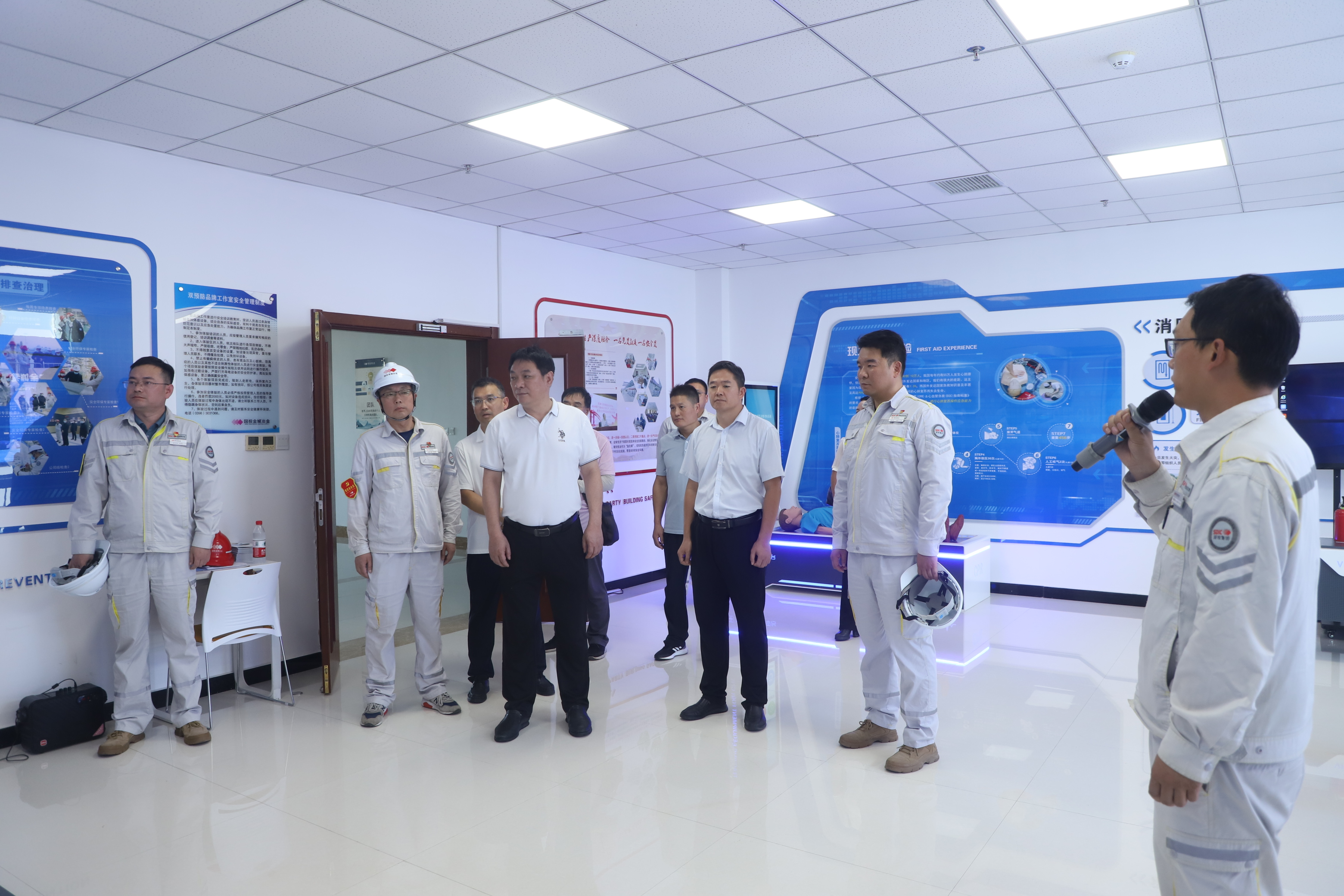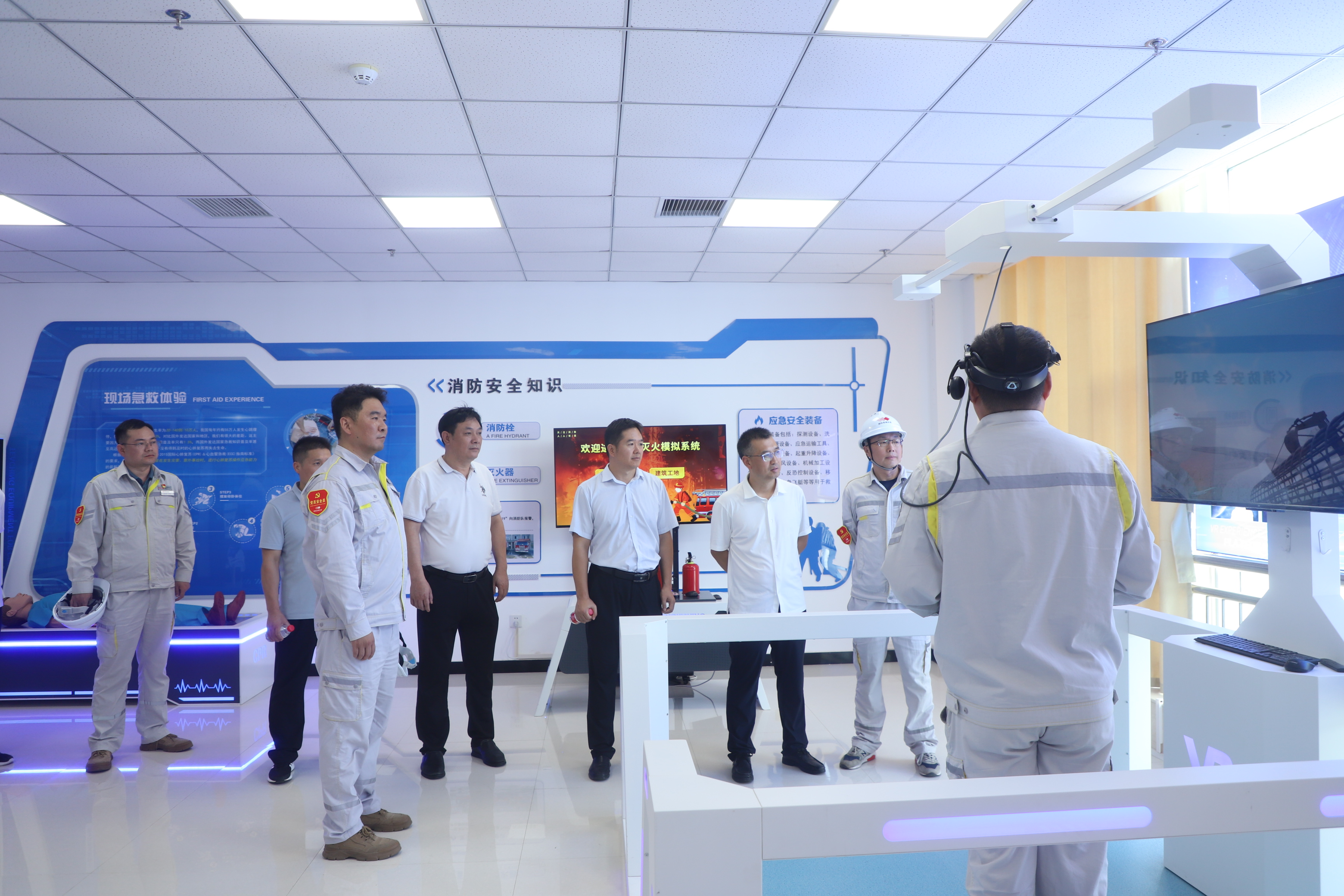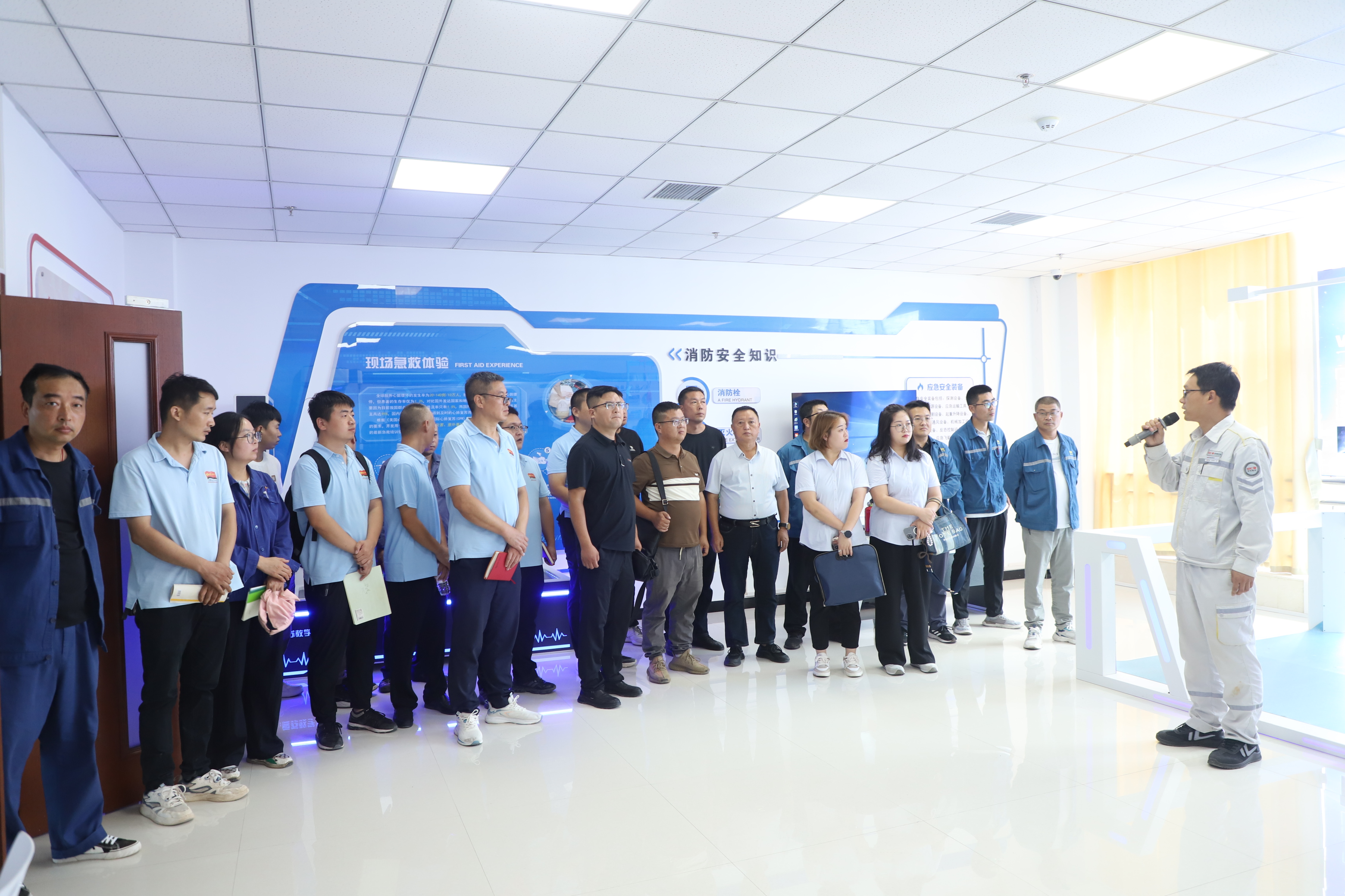 演练开始前,观摩团一行先后到公司展厅、数智中心、双预防品牌工作室等地观摩调研,详细了解公司生产工艺、双重预防机制建设、安全生产标准化建设等情况。公司党委书记、总经理刘辉,副总经理张宏斌,安健环总监张立武陪同。