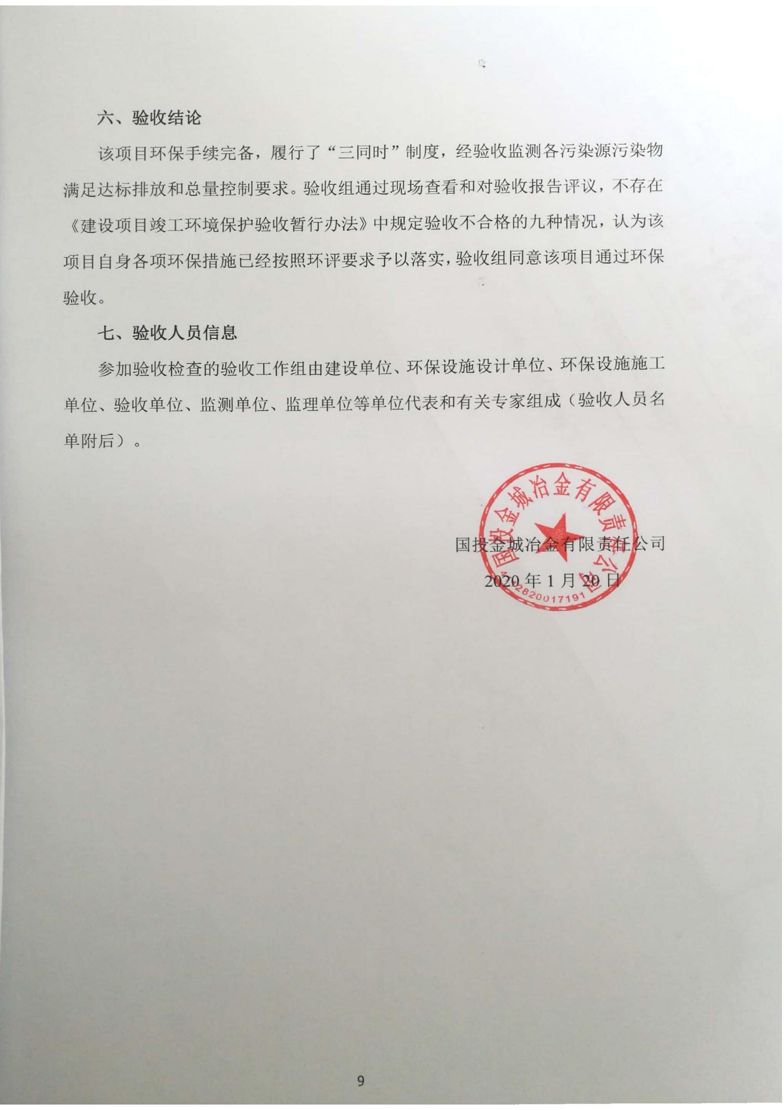 国投金城冶金有限责任公司灵宝市黄金产业上大压小技术升级项目(日处理2000吨复杂难处理金精矿多金属综合回收项目)竣工环境保护验收意见-龙虎棋牌